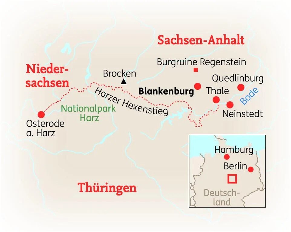 Entdecken Sie auf dieser Reise das nördlichste Mittelgebirge Deutschlands. Ihre Wanderungen führen Sie vorbei an schroffen Felsen, durch wunderschöne Altstädte sowie über rustikale Holzbrücken über plätschernde Bäche. Diese pittoreske Märchenwelt wird Sie schlichtweg faszinieren. Sie erleben Höhepunkte, wie die Besteigung des Brockens, wo sich zur Walpurgisnacht die Hexen zum Tanze treffen und erholen sich nach Ihren ereignisreichen Wanderungen in Ihrem schönen Vier-Sterne Wellnesshotel.