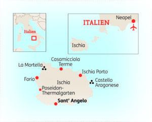 Lassen Sie sich auf dieser 8-tägigen Reise von der grünen Perle im Golf von Neapel verzaubern! Die Insel Ischia empfängt Sie mit blumenumsäumten Hügeln, Pinienwäldern und herrlichen Sandstränden. Zugleich lädt die Mittelmeerinsel sowohl Erholungssuchende, als auch Naturfreunde und Kulturinteressierte ein, sie zu erkunden. Durch ihren vulkanischen Ursprung hat Ischia viele natürliche Thermalquellen, die rund um die Insel verteilt sind – freuen Sie sich auf Urlaub der ganz besonderen Art.