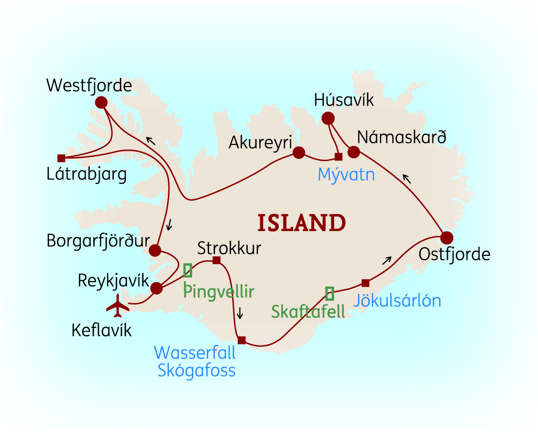 ISLAND - In 15 Tagen erkunden Sie bei dieser Reise sowohl die bekannten Highlights Islands als auch wohlbehütete Geheimtipps der Insel aus Feuer und Eis. Neben sagenhaften Wasserfällen, beeindruckenden Gletschern und geothermaler Aktivität nehmen Sie auch die geologisch ältesten Teile der Insel unter die Lupe, in die es nur wenige Besucher verschlägt - die unberührten Ostfjorde und die imposanten Westfjorde. Eine wahrlich einmalige Reise, die Sie sich nicht entgehen lassen sollten!