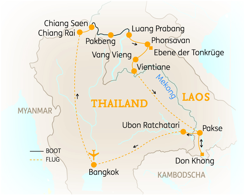 LAOS - Auf dieser 15-tägigen Reise entdecken Sie die Höhepunkte von Laos! Lassen Sie sich von der charmanten alten Königsstadt Luang Prabang verzaubern, entdecken Sie die geheimnisvolle Ebene der Tonkrüge, schlendern Sie durch die neue Hauptstadt Vientiane und genießen Sie viel Zeit am und auf dem Mekong, dem größten Strom Südostasiens! Lassen Sie sich von der wunderschönen Natur, den vielfältigen Kulturen und den Menschen, denen Sie begegnen, nachhaltig beeindrucken!