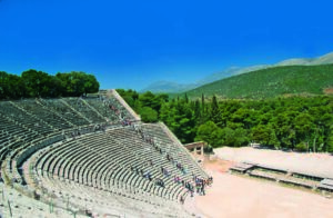 Im Asklepios-Heiligtum erwartet Sie das antike Theater mit seiner einzigartigen Akustik (UNESCO Weltkulturerbe). Es ist das besterhaltene Theater Griechenlands und begeistert noch heute als Aufführungsort von antiken Theaterstücken. (F/A)