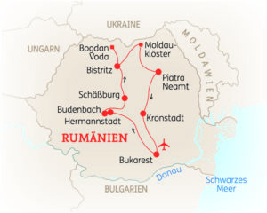 Auf dieser 10-tägigen Reise erwarten Sie die dicht bewaldeten Berge und sattgrünen Wiesen, herrschaftlichen Städte und rustikalen Bergdörfer Rumäniens. Entdecken Sie die bunten Moldauklöster der Bukowina und in der idyllischen Region Maramures kleine Holzkirchen. Einen Kontrast zum ländlichen Idyll in Siebenbürgen bietet die Metropole Bukarest. Freuen Sie sich auf die Höhepunkte eines noch weitgehend unentdeckten Landes und treffen Sie auf die aufgeschlossene, herzliche Bevölkerung.