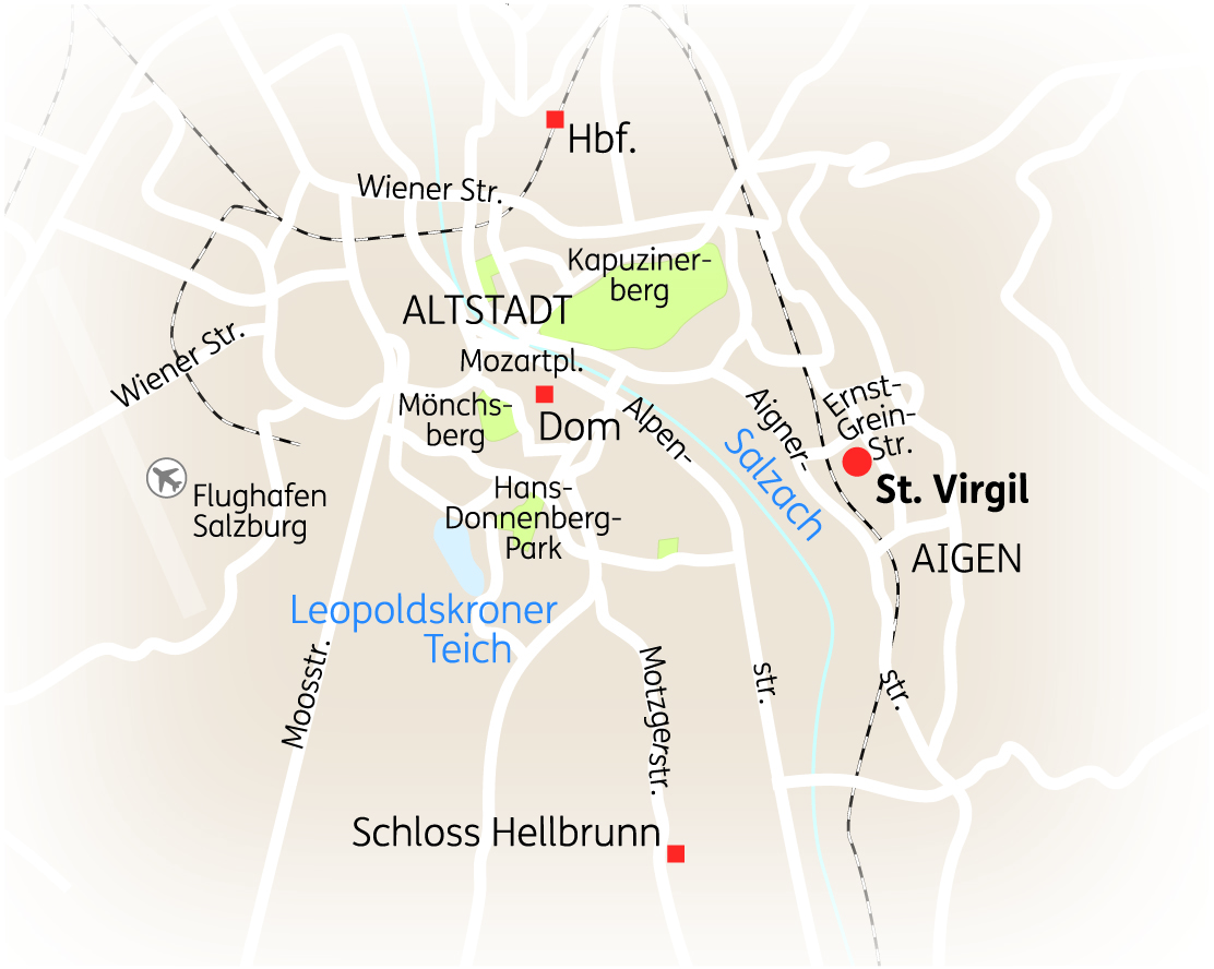IHR HOTEL „ST. VIRGIL“ist mit seiner herrlichen Lage und der zeitgenössischen, modernen Architektur der ideale Ort, Salzburg und Umgebung zu erleben. Ganz entspannt wohnen Sie inmitten eines weitläufigen Parks am Rande des Stadtzentrums mit Aussicht auf die herrliche Kulisse der Salzburger Hausberge. Jedes der Zimmer ist mit Bad oder Dusche/WC, Kabel-TV, Internet, Radio, Telefon und Balkon ausgestattet.
