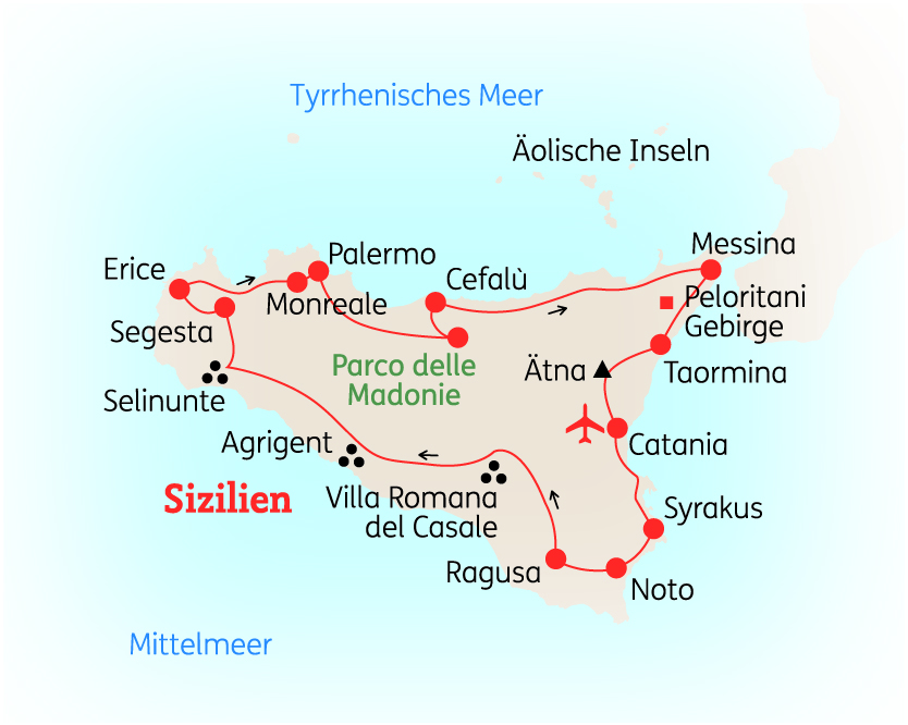 Landschaftlich wie kulturell präsentiert sich die Mittelmeerinsel ausgesprochen facettenreich. Auf Ihrer 14-tägigen, ausführlichen Reise erwartet Sie ein umfangreiches Weltkulturerbe aus vergangenen Epochen in Syrakus, Agrigent, Palermo oder Monreale sowie eine landschaftlich wunderschöne Kulisse aus grünen Zitruspflanzen, bezaubernden Mandelbäumen, dichten Korkeichenwäldern und blühenden Feigenkakteen.
