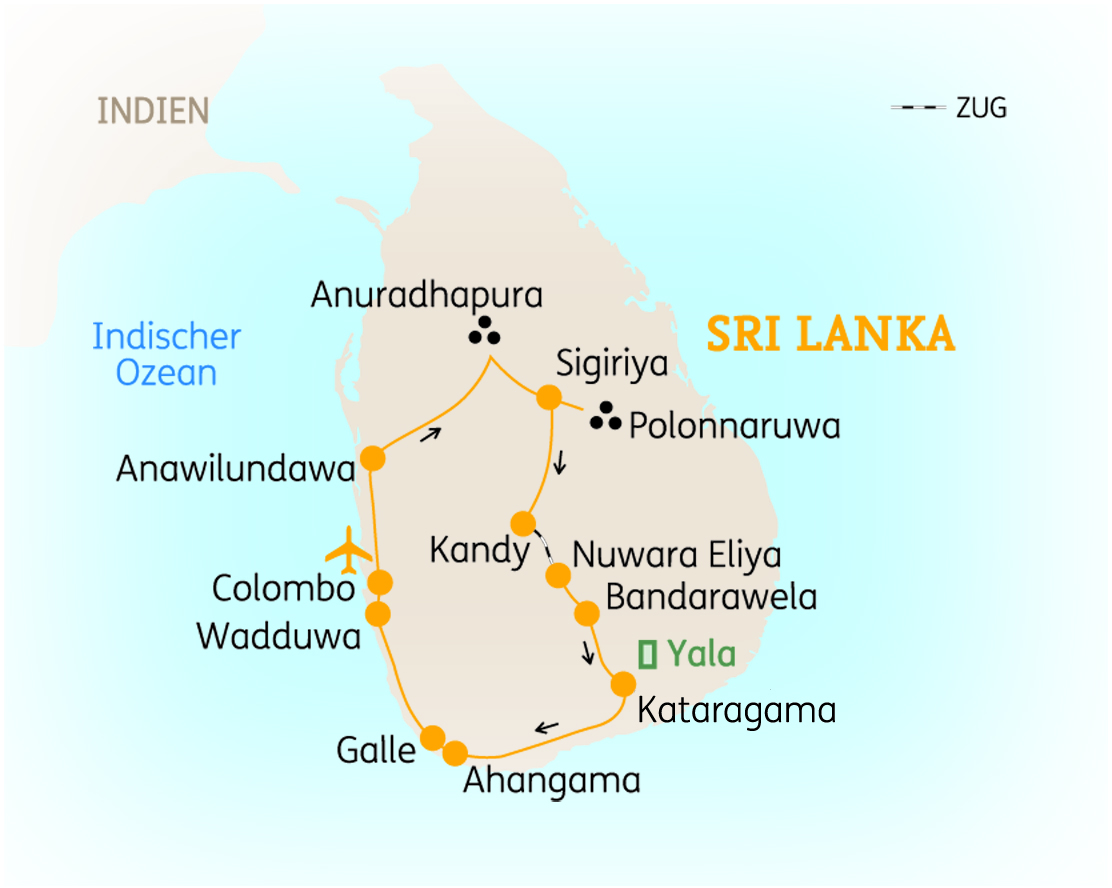 SRI LANKA -Das ehemalige Ceylon ist ein Juwel im Indischen Ozean! Es riecht nach Tee und Gewürzen und die tiefe Religiosität der Inselbewohner bestimmt heute noch den Alltag. Entdecken Sie auf dieser 14-tägigen Reise kulturelle Vielfalt, buddhistische und hinduistische Verbundenheit, historische Sehenswürdigkeiten, eine artenreiche Tierwelt sowie exotische, palmengesäumte Traumstrände und genießen Sie die Herzlichkeit und Offenheit der Bewohner Sri Lankas!