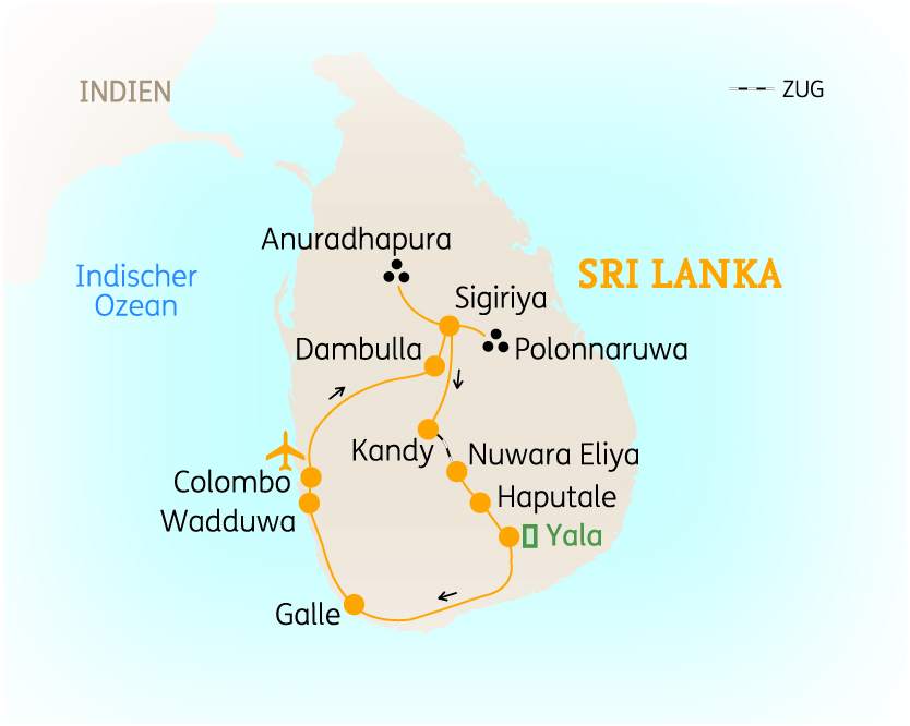 SRI LANKA - Auf dieser Reise erleben Sie die Höhepunkte Sri Lankas und genießen dabei den ganz besonderen Charme Ihrer ausgewählten Unterkünfte im gehobenen Stil. Ihre Reise startet in Colombo, führt Sie vorbei an alten Königsstädten sowie der weltberühmten Sigiriya-Festung bis hin zur kolonialen Perle Galle. Sie gehen auf Safari im Yala-Nationalpark und entspannen am Ende Ihrer Reise in einem Strandhotel am Indischen Ozean. Lassen Sie sich von den Kontrasten dieses Landes verzaubern!