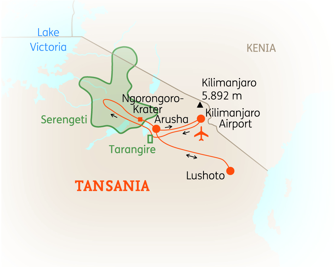TANSANIA - Ob in den weiten Steppen der Serengeti, im baumreichen Tarangire-Nationalpark oder im einzigartigen Ngorongoro-Krater: In den Nationalparks von Tansania begegnen Sie der afrikanischen Tierwelt in Hülle und Fülle! Freuen Sie sich auf eine 14-tägige Reise zu den „Big Five“ und den Naturwundern des Landes. Neben der klassischen Safari-Route sehen Sie die dichten Wälder der Usambara-Berge und genießen die Berglandschaft mit deutschem Kolonialerbe bei Wanderungen und Dorfbesuchen.