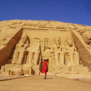 Durch die Nubische Wüste zu den Tempeln nach Abu Simbel (UNESCO-Welterbe) – gerettet vor den Fluten des Nassersees. Wir starten rechtzeitig, damit wir die ersten Sonnenstrahlen auf die Wüste nicht versäumen. Auch die Tempel von Ramses II. und seiner Frau in Abu Simbel werden für uns wie Bühnenstars beleuchtet. 580 km auf guten Straßen. (F, A)