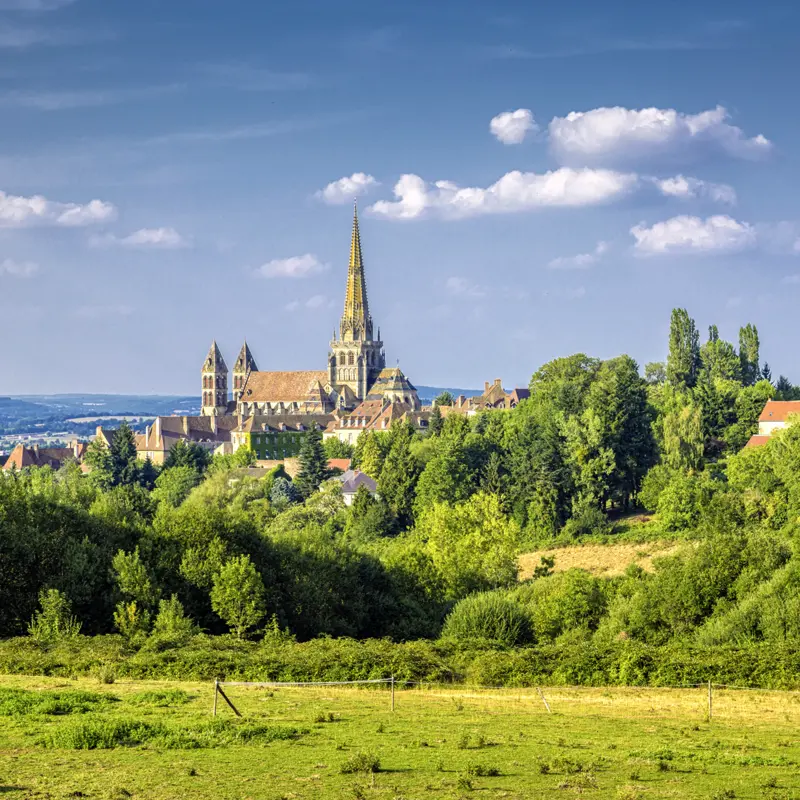 Auf unserer Fahrt nach Paray-le-Monial durchqueren wir den Naturpark Morvan mit seinen dichten Wäldern und eingesprenkelten Seen. Wir nehmen uns Zeit für die Natur, spazieren zum romantischen Wasserfall von Gouloux und an einem schönen Platz zaubert Ihre Reiseleiterin die kulinarischen Freuden der Region – Brot, Wein und Käse – aus dem Picknickkorb. Am Nachmittag in Autun öffnet sich am Portal der Kathedrale St-Lazare für uns eine Schatzkammer mittelalterlicher Bildhauerkunst: Am Jüngsten Tag wird das Gute vom Bösen geschieden, kämpfen Engel und Dämonen um Menschenseelen. Ihre Reiseleiterin zeigt Ihnen, dass die Steinmetze des 12. Jahrhunderts dabei aber auch eine gute Portion Humor hatten! Guter Laune sind auch wir, wenn wir am Abend im Hotel zum Diner erwartet werden. 220 km. Drei Übernachtungen in Paray-le-Monial. (F, A, P)