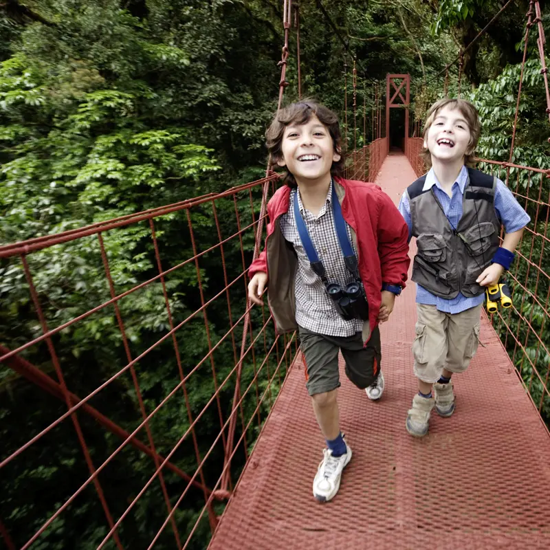 Turnende Kapuzineraffen, dösende Faultiere, flatternde Kolibris. Über Hängebrücken streifen wir durch den Nebelwald, wo die Farne riesig sind und der Göttervogel Quetzal wohnt. Vielleicht entdecken wir Schildkröten bei der Eiablage? Kaimane beim Sonnen? An Vulkanen nehmen wir ein Schlammbad und entspannen in heißen Quellen. Dazu frische Kokosnuss, handgemachte Schokolade und selbst gepresster Zuckerrohrsaft. Und Strandtage am Pazifik – ganz nach Familien-Gusto.