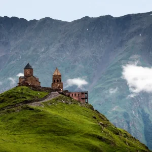 Das Wasser des Mtkwaris ist bernsteinfarben, das des Aragwis gletscherblau. In Mzcheta, Georgiens alter Hauptstadt, vereinen sich die Flüsse. Magisch! Am schönsten ist der Blick aufs Wasser von der Dschwari-Kirche aus – Zentrum des religiösen Lebens in Mzcheta. Auf der Georgischen Heerstraße arbeiten wir uns dann windungsreich in den Großen Kaukasus vor. Noch ein Fotostopp an der Klosterfestung Ananuri, dann geht es über den Kreuzpass nach Stepantsminda. Von der grandiosen Terrasse des • Hotels Stancia erspähen wir mit etwas Glück sogar den 5047 m hohen Kasbek. 20 kuschelig-moderne Zimmer mit Balkon, geschmackvolles Panoramarestaurant, familiäre Atmosphäre, leckeres Abendessen – ein alpines Paradies. Zwei Übernachtungen in Stepantsminda. (F, A)