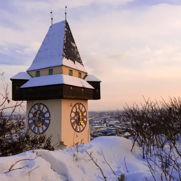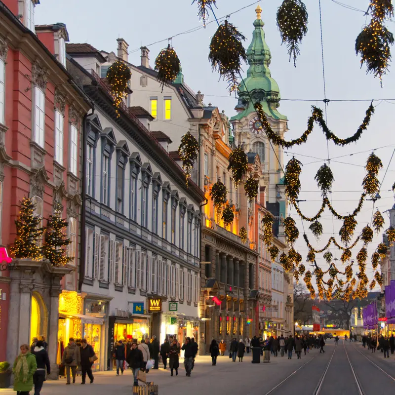 Graz als eine der UNESCO-Creative Cities steht für Zukunft – die perfekte Stadt, um ins neue Jahr zu feiern. Die Hauptstadt der Steiermark bietet neben Futurismus ein Mosaik architektonischer Highlights aus Renaissance und Barock. Im reizvollen Umland sehen wir von Ernst Fuchs und Hundertwasser gestaltete Kirchen, das älteste Zisterzienserkloster und die sagenhafte Riegersburg. Wir naschen auf dem Bauernmarkt, genießen eine Weinprobe und staunen vor Gsellmanns Weltmaschine. Dass sich die Welt auch 2025 weiterdreht, das feiern wir am Silvesterabend mit einem Galadinner auf dem Schlossberg bei besten Aussichten.