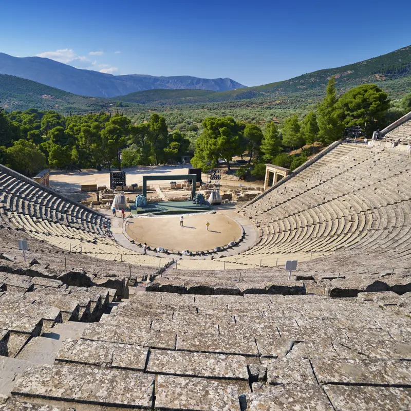 Am Vormittag heißt es "Vorhang auf!" für das schönste Theater Griechenlands: Epidauros. Ihre Reiseleiterin schickt Ihnen ergreifende Arien durchs Audioset, und mit Maria Callas erwacht eine der größten Sopranistinnen des 20. Jahrhunderts zu neuem Leben. Anschließend erwartet uns ein weiteres Highlight: In einem Boot fahren wir durch den ca. 6 km langen und 80 m tiefen Kanal von Korinth, der den Peloponnes vom Festland trennt. Sollten die Boote saisonbedingt noch nicht fahren, besuchen wir die Ausgrabungen von Korinth. Per Bus geht es dann zurück in die Hauptstadt. 170 km. In Athen angekommen, bleibt Zeit für einen Einkaufsbummel in der Fußgängerzone Ermou oder für den Besuch des Nationalmuseums. Zum Abschiedsessen treffen wir uns in einer Taverne, wo wir die Reise mit griechischen Spezialitäten gemeinsam und genüsslich ausklingen lassen. (F, A)