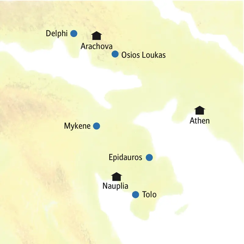 Griechenland entspannt und spannend: stilvolle Hotels - stylish in Athen, rustikal im Bergdorf Arachova, mediterran chic in der malerischen Hafenstadt Nauplia. Viel Zeit zum Baden, Frappétrinken und für die Klassiker Delphi, Mykene und Epidauros. Griechische Leckerbissen gibt es in Tavernen, im Garten eines Töpfermeisters und in einem Kloster. Und spätestens beim Grillen auf dem Boot von Kapitän Vaggelis nimmt man das Leben griechisch gelassen.