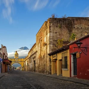 Bahnanreise 1. Klasse zum Flughafen und Flug mit Iberia über Madrid nach Guatemala-Stadt (Flugdauer ab Madrid ca. 11,5 Std.). Ankunft am Nachmittag und Fahrt nach Antigua (1500 m). 40 km. Ihr Studiosus-Reiseleiter begrüßt Sie in einer der hübschesten Kolonialstädte des gesamten Kontinents. Drei Übernachtungen in Antigua.
