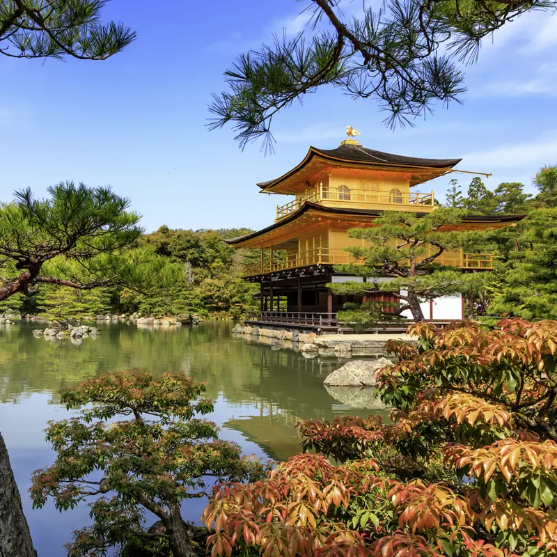 Über 1000 Jahre war Kyoto Kaiserstadt – daran erinnern unzählige Tempel und Gärten. Wir sehen einige der schönsten: den Goldenen Pavillon (UNESCO-Welterbe), der sich in vollendeter Schönheit im Wasser spiegelt, und den rätselhaften Zen-Garten des Ryoan-Tempels (UNESCO-Welterbe). Dann weiht uns eine Teemeisterin in die Kunst der Teezeremonie ein: Mit Bambusbesen und gekonnten Handgriffen bereitet sie den feinbitteren Matcha-Tee zu und reicht uns eine Schale mit einer Süßigkeit. So geht im privaten Rahmen unsere Reise traditionsreich zu Ende. Und schauen Sie vor dem Schlafengehen unbedingt auf Ihr Kopfkissen, wer Ihnen da zum Abschied winkt … (F)