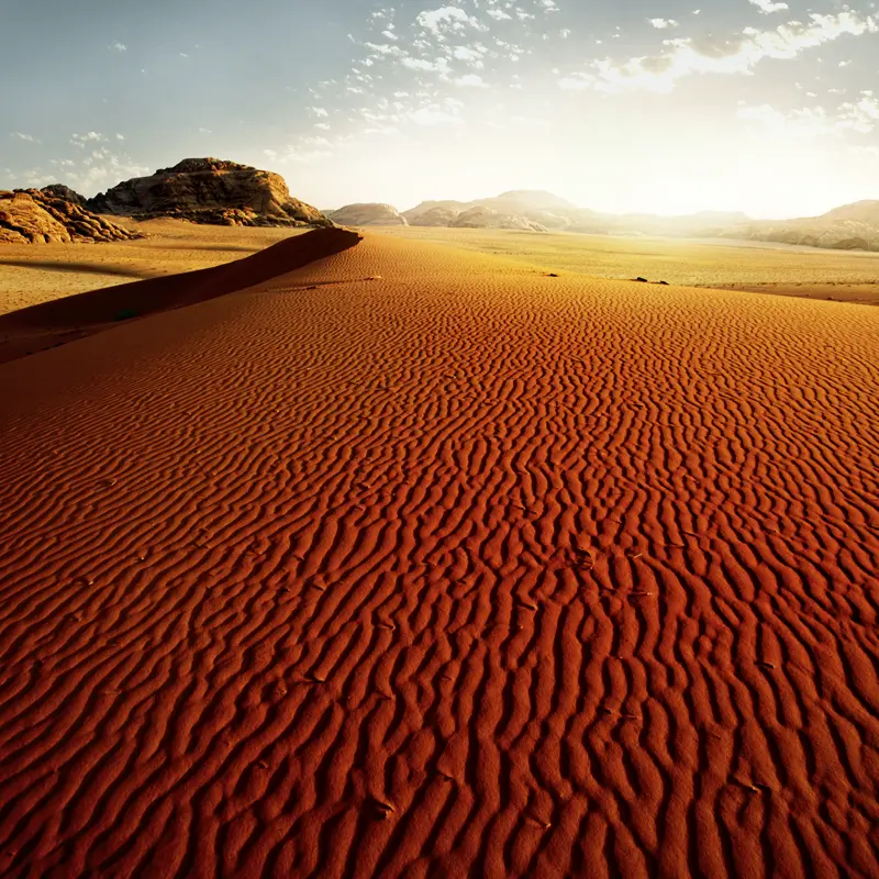 Machen Sie sich bereit für ein unvergessliches Finale! Am Vormittag geht's los. Während der Jeepfahrt über die Sandpiste lauschen wir dem Flüstern des Wüstenwinds, halten Ausschau nach Beduinen und Kamelen und folgen der Zickzacklinie der Berge mit den Augen. Das Wadi Ram (UNESCO-Welterbe) ist einzigartig mit seinen surreal geformten Berggiganten, die in allen Rottönen leuchten. Wir lassen uns von der überwältigenden Aura betören und haben die Gelegenheit, in aller Ruhe die Steinriesen zu beobachten, wie sie mit dem Licht Theater spielen. Kaum vorstellbar, dass Lawrence von Arabien und sein Gefolge im Kampf gegen die Osmanen diese heroische Wunderwelt einst zum Schlachtfeld machten. Danach machen wir uns auf den Rückweg nach Amman. 400 km. (F, A)
