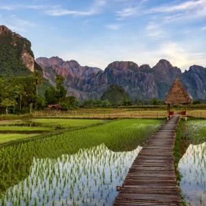 Ein Tag wie ein spannendes Roadmovie: Es geht durch atemberaubende Täler, durch die traditionellen Straßendörfer der Hmong, Khmu und Lao, vorbei an fotogenen Kegelkarstbergen, und dazu hören wir im Bus melancholische laotische Lieder. Unser heutiges Ziel: Vang Vieng inmitten einer spektakulären Berglandschaft. 230 km. (F, A)