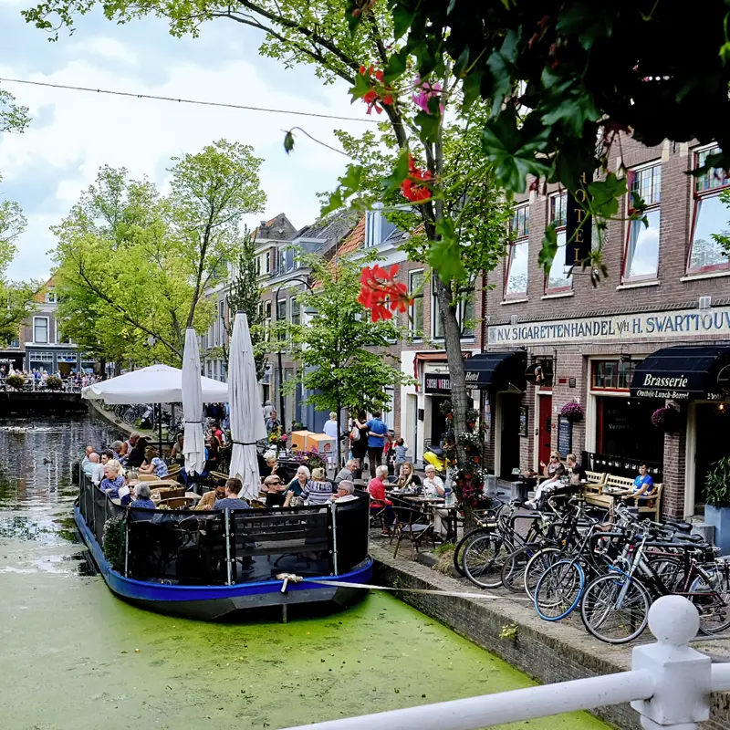 Ganz ohne Stau auf der Autobahn geht es heute entspannt per Bahn nach Amsterdam. Und auch bei unserer Stadterkundung lassen wir es maximal geruhsam angehen: Auf einem Boot, das wir ganz für uns haben, gleiten wir durch die Grachten, vorbei an den malerischen Häuserzeilen, den lebhaften Plätzen und unter vielen der über 1200 Brücken hindurch. Danach können Sie auf eigene Faust losziehen: In eines der berühmten Kunstmuseen, zum Vondelpark oder ins Café an der Gracht. Wer mag, kommt am späteren Nachmittag mit der Reiseleiterin zurück nach Delft. Oder Sie bleiben noch länger in Amsterdam, machen einen Abstecher ins Szeneviertel Jordaan und fahren auf eigene Faust mit der Bahn zurück, wann immer Sie möchten. Direkte Verbindungen gibt es stündlich. (F)