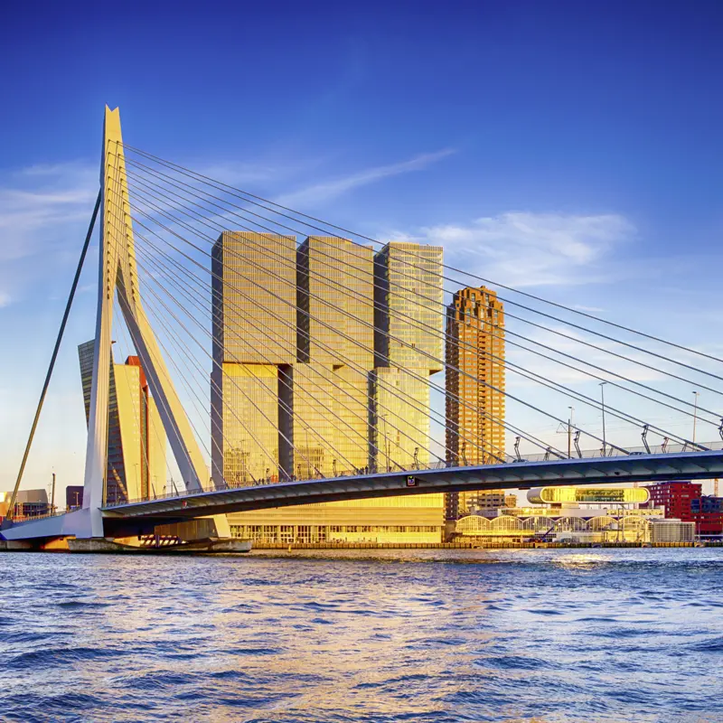Mit dem Zug gelangen wir von Delft aus in wenigen Minuten direkt ins Zentrum von Rotterdam. Die zweitgrößte Stadt der Niederlande präsentiert sich gar nicht altehrwürdig, sondern futuristisch und modern. Nachdem wir uns vom Euromast einen ersten Überblick verschafft haben, spazieren wir durch den malerischen Delfshaven, der, wie sein Name verrät, ehemals der Handelshafen der Stadt Delft war. Dann gehen wir per Bus auf Architektour und steuern zunächst die spektakuläre, farbenfrohe Markthalle an. Über die Erasmusbrücke gelangen wir auf das andere Maasufer, wo sich Stararchitekt Rem Koolhaas mit seiner Vertikalen Stadt ein architektonisches Denkmal geschaffen hat. Nach der Mittagspause werfen wir schließlich noch einen Blick in Piet Bloms Kubushäuser, ein spannender asymmetrischer Wohnentwurf aus den frühen Achtzigerjahren, und dann gehört der restliche Nachmittag Ihnen. Haben Sie Lust auf eine Rundfahrt durch Europas größten Hafen oder auf einen Besuch in einem der hochklassigen Kunstmuseen? (F)