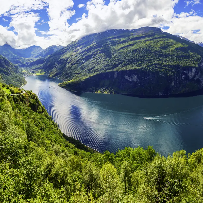 Unser Bus schraubt sich elegant hinauf zum Aussichtspunkt Dalsnibba. Auf dem Skywalk schweben wir förmlich über der imposanten Landschaft und schauen auf unser nächstes Ziel, den Geirangerfjord. Im Fjordsenter beleuchtet Ihr Reiseleiter die vielen Facetten der Landschaft. Ein Spaziergang durch den Ort Geiranger? Perfekt für Souvenirjäger! Zurück nach Grotli nehmen wir die alte Straße, vorbei an Norwegens bekanntestem Sommerskigebiet. Wer den Geirangerfjord schon kennt, kann heute bei Billingen eine kleine Wanderung auf dem Fjell unternehmen – ein beeindruckender Wasserfall und ein bezauberndes Café zur Einkehr sind der Lohn. (F, A)