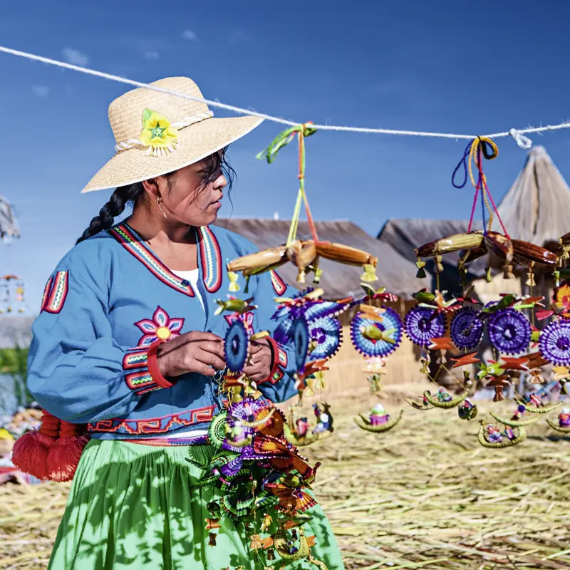 Kobaltblau schimmert uns der Titicacasee entgegen, und von ferne grüßen die schneebedeckten Sechstausender der Königskordillere herüber. Wir entdecken das Andenmeer per Boot und erleben, wie die Bewohner der schwimmenden Inseln vom Hausbau bis zum Pausensnack ihr Leben ganz dem Binsengras anpassen. Und wir erfahren, warum die Männer auf der Insel Taquile keine Ruhepause kennen und beim Warten auf den nächsten Job zu Strickkönigen werden. Mittags sind wir zu Gast in einem rustikalen Restaurant auf der Insel, bevor wir zum Festland nach Puno zurückfahren. (F, M)