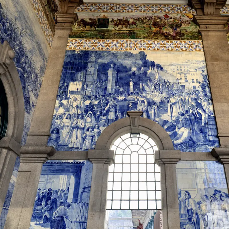 Vorhang auf für Porto! Die Fliesen im Bahnhof Sao Bento erzählen viele Geschichten. Wir spazieren durch die Gassen der Stadt, bewundern Jugendstilfassaden und die Betriebsamkeit in den schmalen Sträßchen und im Ribeira-Viertel. Die Dourobrücken, die malerischen Stadtansichten und die Portweinkeller sehen wir vom Wasser aus - eine Bootsfahrt auf dem Douro macht's möglich. Und am Abend ins Konzert? Ihr Reiseleiter kümmert sich gerne um die Karten für die futuristische Casa da Música. (F)