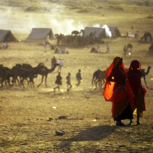 Heute geht es mit Bus und Jeeps in die Wüste, wo die Kamele schon gesattelt sind. 160 km. Auf unseren Wüstenschiffen reiten wir stolz wie Maharadschas dem Sonnenuntergang an den Sanddünen entgegen. Mit einem Drink im Glas zelebrieren wir den Moment. Beim Abendessen knistert das Lagerfeuer, die Sterne funkeln über uns, und Musiker bringen mit Trommeln, Flöten und Gesang die Wüste zum Klingen. Unser stilvolles Lager für die Nacht: Luxuszelte wie jene, in denen die Wüstenherrscher einst nach der Tigerjagd entspannten. (F, A)