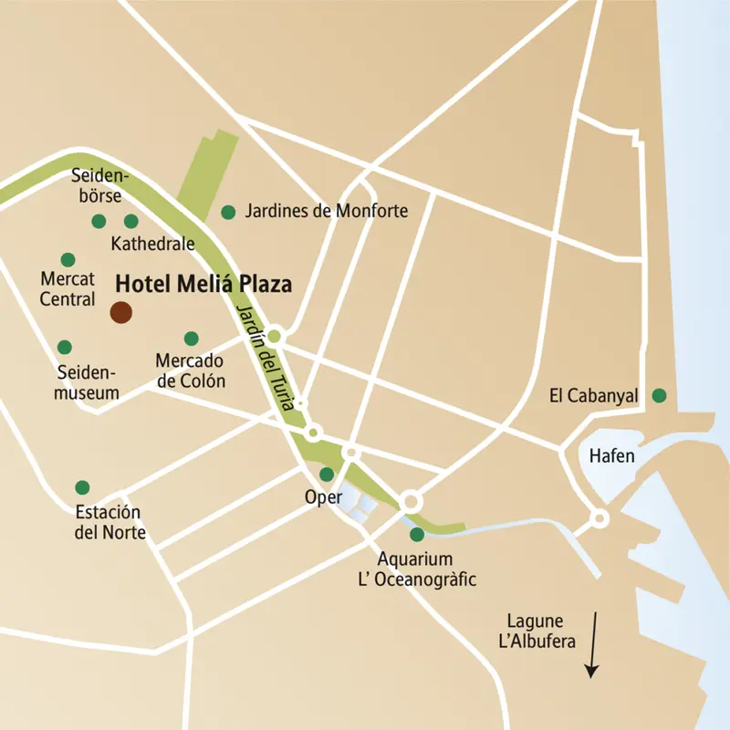 Mit dem Jardín del Turia hat sich Valencia eine grüne Oase geschaffen. Er zählt zu den größten städtischen Naturparks Spaniens. Wir spazieren durch das ehemalige Flussbett des Turia-Flusses. Technisch ausgefeilt geht es weiter, wie Raumschiffe wölben sich die Bauten der Stadt der Künste und Wissenschaften in die Höhe. Sind das nicht die Klänge von "Star Wars" im Studiosus-Audioset? Eine Reise in fremde Welten? In der Oper dürfen wir dann einen Blick hinter die Kulissen werfen. Nachmittags in Eigenregie: Lust, das L'Oceanogràfic, den größten Aquariumskomplex Europas, zu besuchen? Am Abend streifen wir gemeinsam durch die Altstadt und erinnern uns noch einmal an die vielen eindrucksvollen Momente, die uns noch lange in Erinnerung bleiben werden. (F)