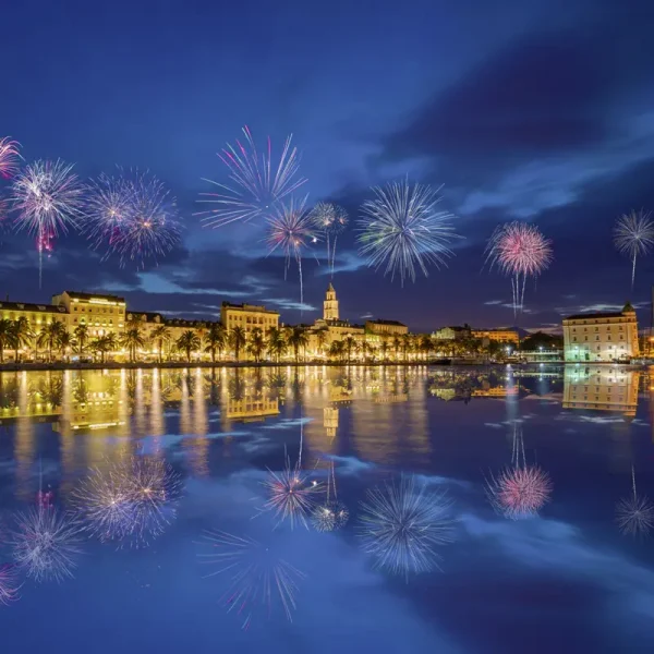 Heute fahren wir mit dem Bus in den Krka-Nationalpark, wo in den berühmten Filmen schon Winnetou und seine Apachen gebadet haben. Donnernde Wasserfälle, rauschende Bäche und gluckernde Stromschnellen – kann es eine schönere Kulisse für unseren Neujahrsspaziergang geben?! Am Nachmittag schlendern wir durch das Gassengewirr von Trogir (UNESCO-Welterbe). Die Altstadt liegt auf einer Insel, der Campanile ist schon von Weitem zu sehen; die lauschigen Plätze dienten bereits des Öfteren als Filmkulisse. Unser Silvester-Dinner erwartet uns dann im Restaurant Bajamonti in der Altstadt von Split, und wir stoßen auf das Jahr 2025 an. Lust auf me(e)hr? Dann ab auf die Uferpromenade Riva! Hier können Sie sich von der Feierfreude der Kroaten überzeugen: Unter den Palmen begrüßen sie tanzend und lachend das neue Jahr. (F)