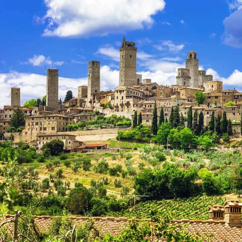 In San Gimignano entführt Ihre Reiseleiterin Sie ins Mittelalter: Geschlechtertürme erinnern an Turmbauwettbewerbe der Adelsfamilien. In der Kollegiatskirche berühren uns die Fresken mit Bibelgeschichten. Danach planen Sie Ihr eigenes Programm oder lassen sich planlos treiben. Ein Spaziergang um die Stadtmauer vielleicht? Ein Gelato auf der Piazza? Mittags kredenzen uns Flavia und Francesco auf ihrem Weingut feine Weine und ein paar Häppchen mitten in einer schönen Hügellandschaft und plaudern mit uns über das Leben im Herzen der Toskana. So lässt es sich aushalten! Danach genießen wir die Fahrt durch die Hügel des Chiantis, bis man uns wenig später im stilvollen • Hotel Villa Casagrande in Figline Valdarno erwartet. Mit viel Liebe zum Detail wurde das Gebäude behutsam in ein modernes Hotel mit 60 Zimmern umgebaut. Romantische Innenhöfe, ein Park sowie zwei Pools laden zum Entspannen ein. Abendessen im Hotel. Vier Übernachtungen in Figline Valdarno. (F, A, I)