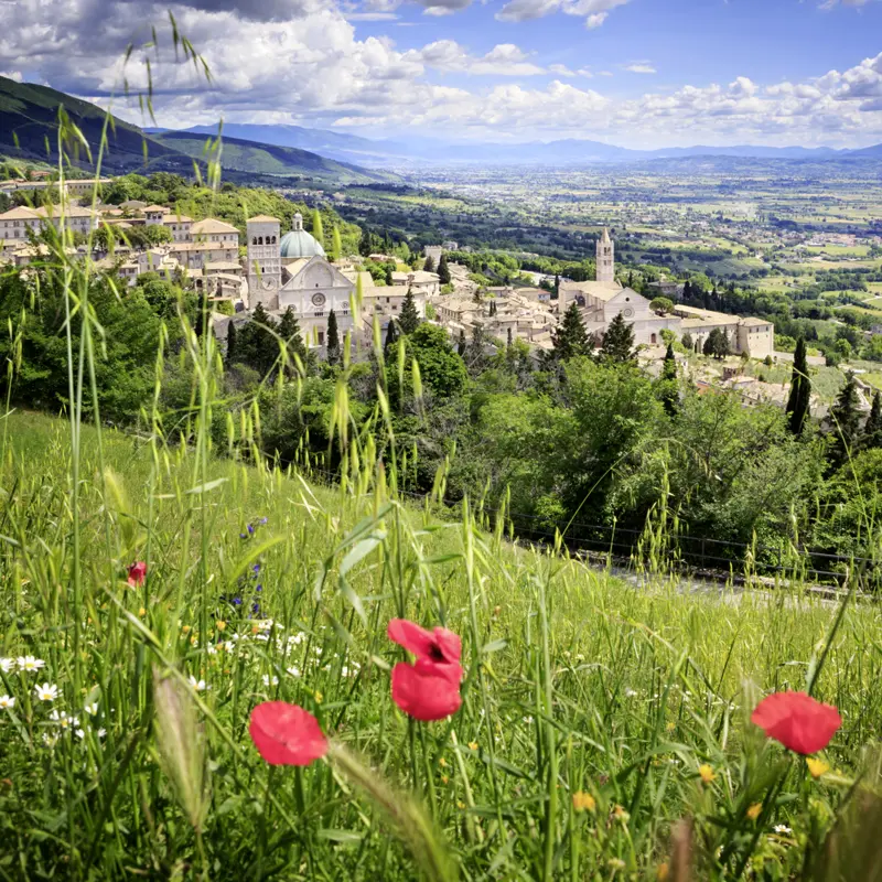 Eine malerische Landschaft aus schroffen wie sanften Bergen und beweideten Tälern, dazwischen wie hingetupft Städtchen aus Naturstein, die stolz auf ihren Hügeln thronen: In Umbrien, dem grünen Herz Italiens, scheinen die Uhren etwas langsamer zu ticken als anderswo. Zeit für Kunst und Genuss: für farbenfrohe Fresken in Assisi oder Orvieto, für urbanes Flair in Perugia und kleine atmosphärische Orte zwischen Mittelalter und Moderne, für die vielen Köstlichkeiten der umbrischen Küche wie Trüffel, Wein oder Olivenöl. Umbrien öffnet alle Sinne für das Schöne im Leben, schenkt aber immer auch einen Hauch von Besinnlichkeit - und das nicht nur, weil Franz von Assisi hier wirkte.