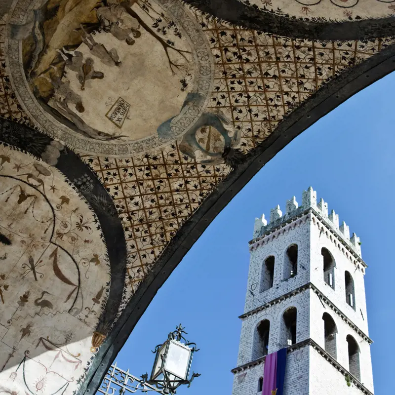 Die blitzblaue Adria ist unser Begleiter auf dem Weg nach Ascoli Piceno, wo Ihre Reiseleiterin Sie durch die Altstadtgassen zur Piazza del Popolo lotst, die Renaissancearkaden säumen. Ein Platz wie eine Theaterbühne – für einige der schönste Italiens! Suchen Sie sich Ihren Platz an der Sonne für den Cappuccino oder gleich fürs Mittagessen: Die gefüllten Oliven - all'ascolana - sind ein Gedicht! (F)