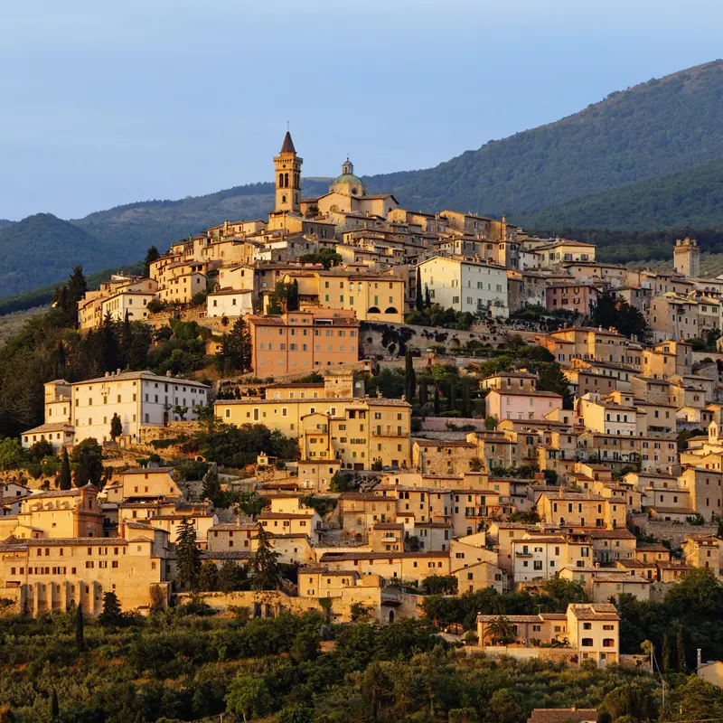 Bevor wir uns von den Marken verabschieden, geht es noch nach Fabriano, seit dem Mittelalter berühmt für seine Papierfabrikation. In einem ambitionierten Museum sehen wir u. a., wie Papier geschöpft wird. Danach fahren wir durch die Berge des Apennins nach Umbrien. In Gubbio überrascht der Palazzo dei Consoli, eine der kühnsten Konstruktionen des Mittelalters und buchstäblich in die Luft gebaut. Bodenständig dagegen die Spezialitäten der Küche wie Strozzapreti mit Wildschweinragout - eine Idee fürs Mittagessen. Noch ein Fernblick vom Aussichtsbalkon der Piazza Grande, bevor wir die • Abbazia Collemedio ansteuern: Mitten in den grünen Hügeln Umbriens liegt dieses Hotel mit seinen 55 Zimmern in einem ehemaligen Kloster. Der Garten mit seinen zwei Pools (im Sommer geöffnet) ist perfekt zur Entspannung und Entschleunigung! Unser Abendessen im Hotel genießen wir heute mit Panoramablick. Vier Übernachtungen in der Nähe von Perugia. (F, A)